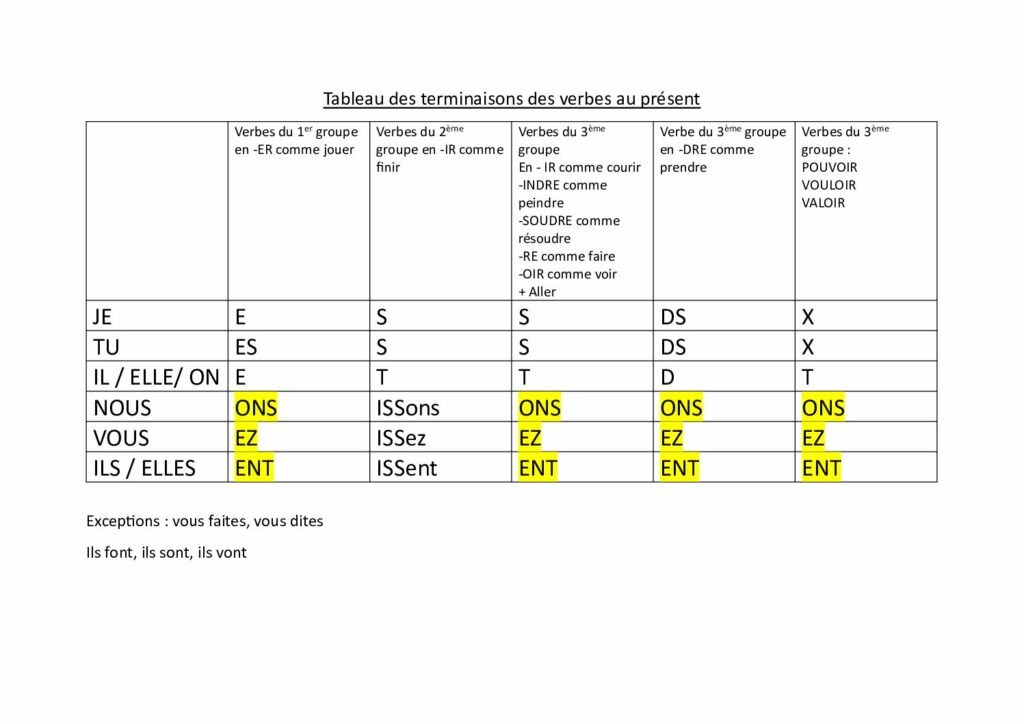 Tableau de simplification des terminaisons du présent de l’indicatif